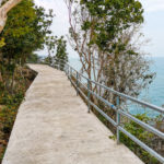 Обширная площадка выглядит как зачищенная территория под стройку и огорожена лентой, но работ пока не ведется. Как следствие — она совсем не оборудована и не предназначена на для туристов, но виды здесь просто потрясающие: море со всеми оттенками бирюзового цвета, холмы покрытые зелеными джунглями, небольшие островки вдали моря и здесь же можно наблюдать заход солнца.